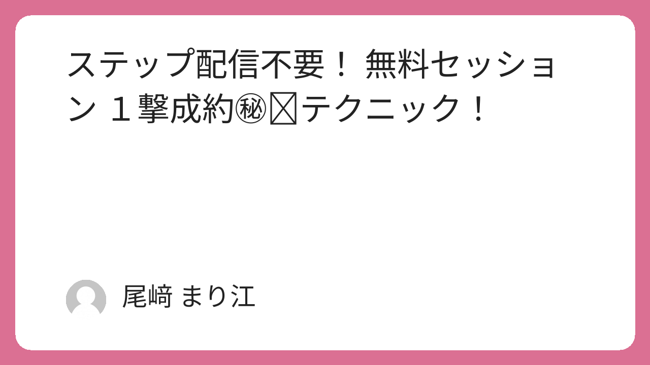 保護中: ステップ配信不要! 無料セッション 1撃成約㊙️テクニック!